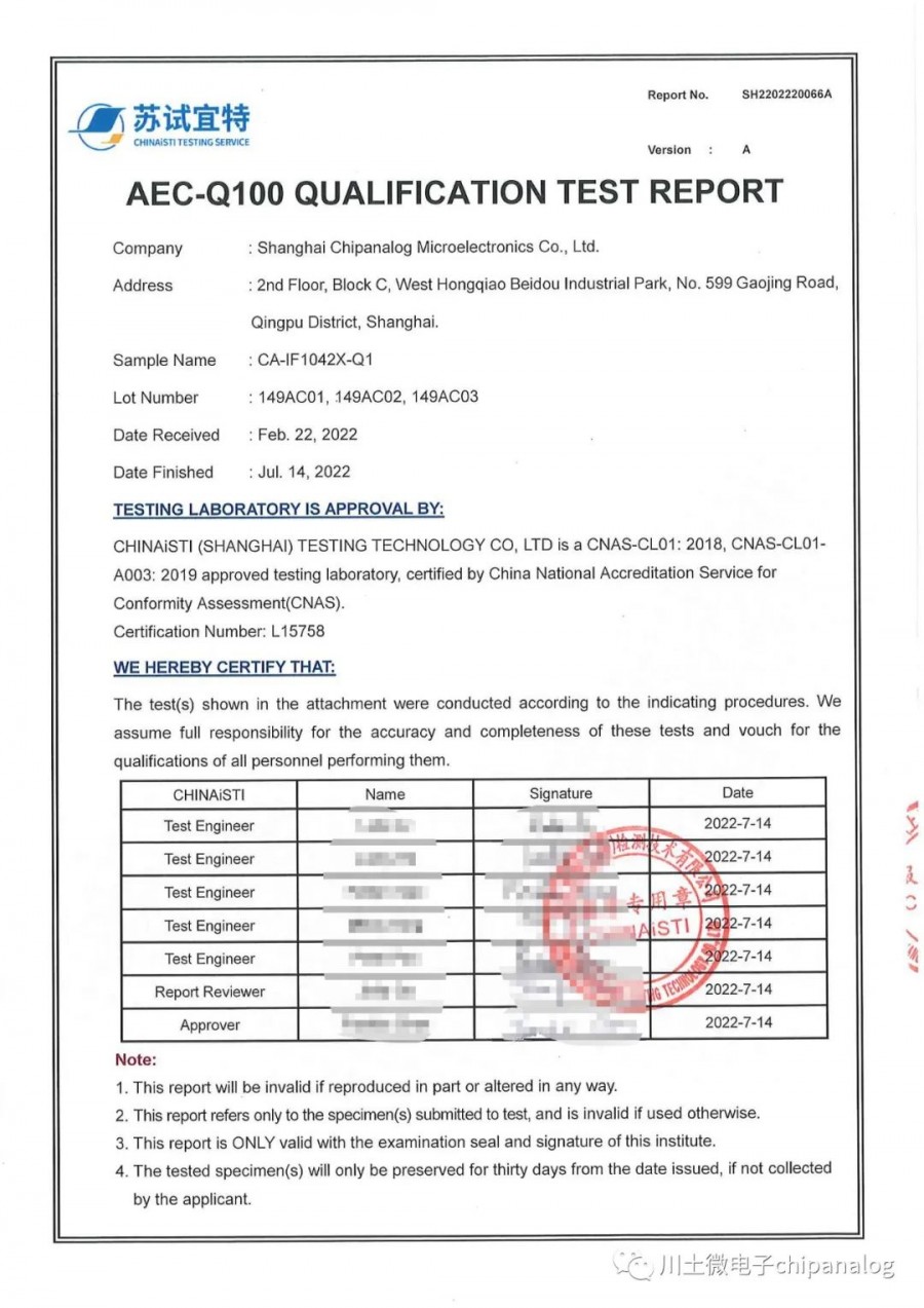 川土微电子CA-IF1042系列 CAN收发器通过第三方AEC-Q100认证!
